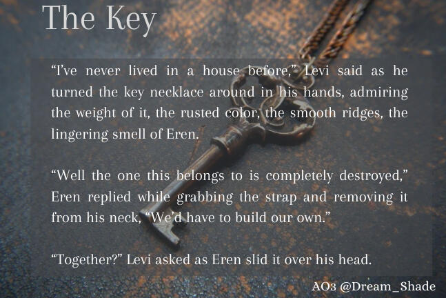 The KeyAnd it was all promises, but none were true.A drabble about Levi and Eren sharing a quiet night together and talking about their future.
