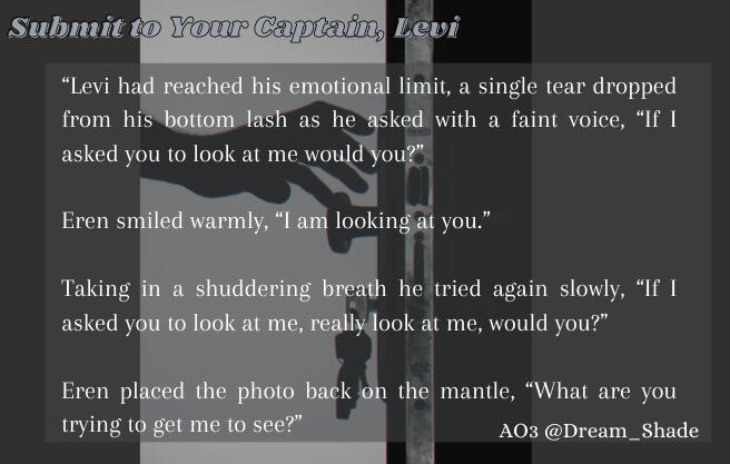 Submit To Your Captain, LeviAnd it was his captain that made him so vulnerable.A drabble about how Cadet Levi confronts Captain Eren about the feelings he’s been having lately.