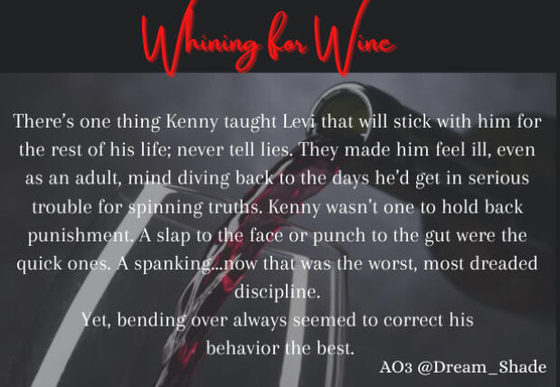 Whining for WineThere’s one thing Kenny taught Levi that will stick with him for the rest of his life; never tell lies. They made him feel ill, even as an adult, mind diving back to the days he’d get in serious trouble for spinning truths. Kenny wasn’t one to hold back punishment. A slap to the face or punch to the gut were the quick ones. A spanking…now that was the worst, most dreaded discipline.